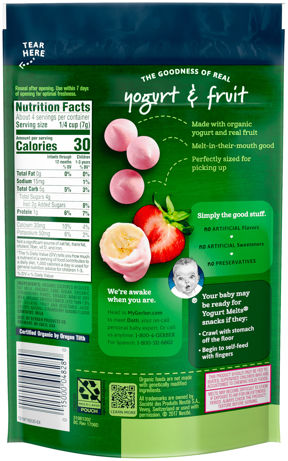 Up to 5 cash back Each Gerber yogurt melt bite has a melt-in-your-mouth texture thats easy to chew and swallow. Protein 1 g. For a new serving.